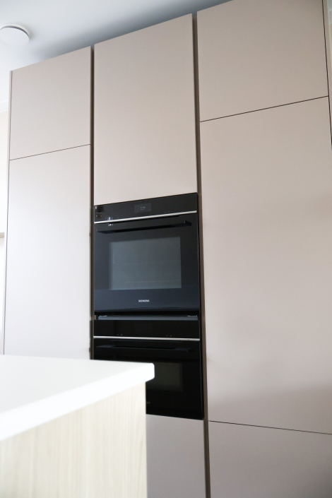 Voor deze woning in Oosterhout realiseerde Lux Interieurbouw een compleet maatwerk interieur met onder andere een moderne keuken, hoge kastenwand, maatwerkkasten, badkamermeubel en een stijlvol tv-meubel. In het ontwerp staan rust, verfijning en gebruiksgemak centraal. Door de combinatie van zachte kleuren, warme houttinten en strakke lijnen ontstaat een tijdloos interieur dat perfect aansluit op de woning en de wensen van de bewoners. De maatwerk keuken is uitgevoerd met een strakke hoge kastenwand, geïntegreerde apparatuur en een ruim werkblad. Daarnaast zorgen de houten onderkasten, het lichte blad en de zorgvuldig gekozen details voor een warme en moderne uitstraling. Ook het tv-meubel is volledig op maat gemaakt en vormt samen met de wandafwerking een rustig en stijlvol geheel. Met maatwerk van Lux Interieurbouw ontstaat niet alleen een mooi interieur, maar ook een praktische oplossing die volledig is afgestemd op de ruimte. Bent u op zoek naar een maatwerk keuken, kastenwand of tv-meubel in Oosterhout, Nijmegen of omgeving, dan denken wij graag mee over een passend ontwerp.
